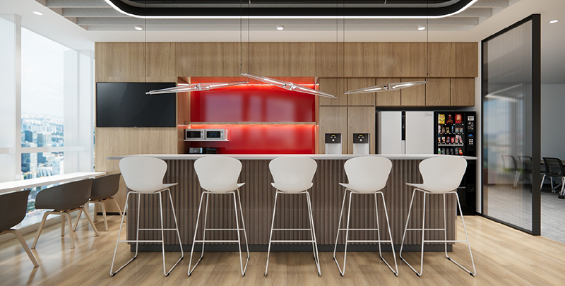 大型辦公室的空間布局應注重功能分區,以提高工作效率和舒適度。一般來說,可以劃分為前臺接待區、開放式辦公區、獨立辦公室、會議室、休息區、茶水間等功能區域。前臺接待區是企業形象的展示窗口,應設計得大氣、簡潔;開放式辦公區則注重團隊協作與溝通,可采用靈活的桌椅布局和開放式隔斷;獨立辦公室則用于高層管理人員或需要私密空間的工作崗位;會議室應配備先進的視聽設備和舒適的座椅,以滿足不同規模的會議需求;休息區和茶水間則為員工提供放松和交流的空間,有助于緩解工作壓力。