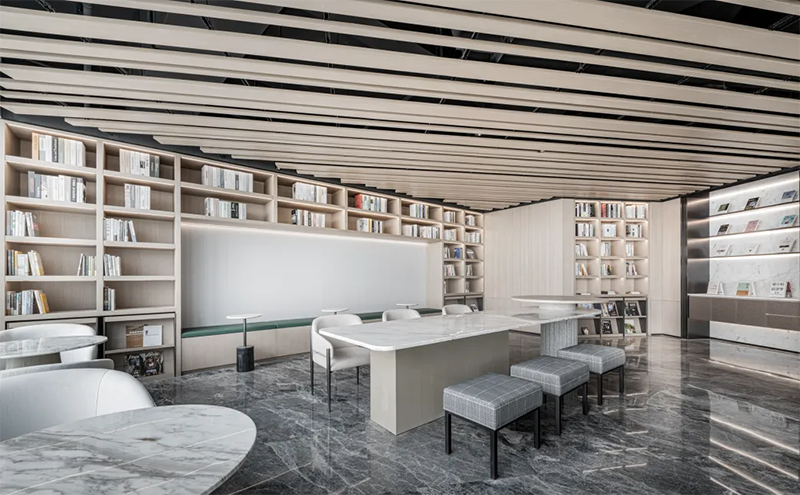 垂直空間往往是小辦公室設(shè)計(jì)中被忽視的一部分。通過增加高架儲(chǔ)物柜、懸掛式架子、吊柜等設(shè)計(jì),可以釋放出更多的地面空間,使得辦公區(qū)域更加整潔有序。墻面可以被用來掛置文件、展示企業(yè)文化和藝術(shù)裝飾,既能夠提高空間利用率,也能增強(qiáng)辦公區(qū)域的視覺效果。